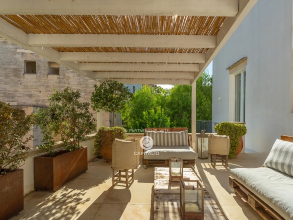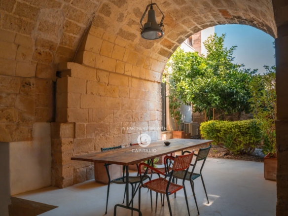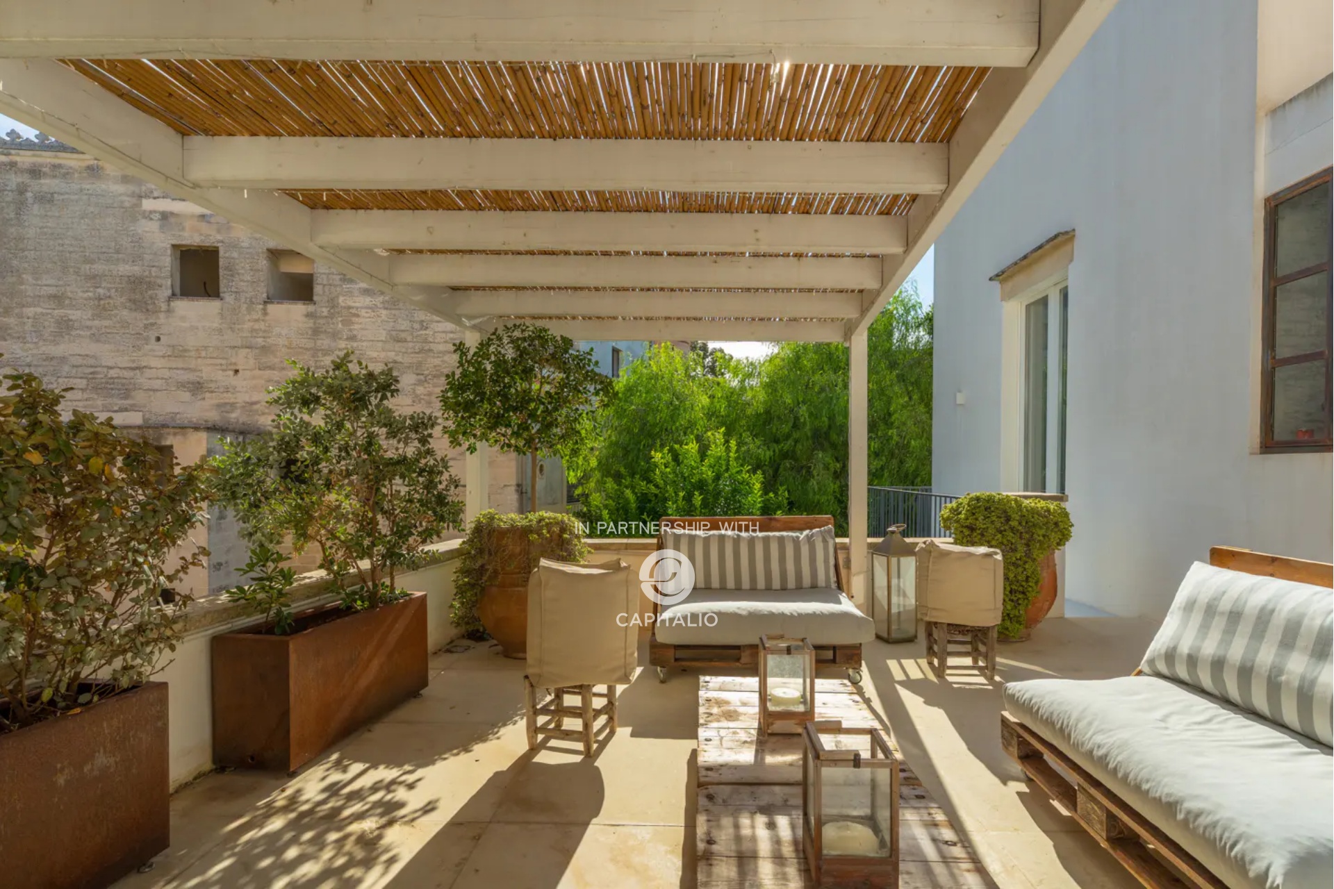 A property with a strong character featuring elements of great originality. A private residence just steps away from Porta San Biagio, within the city walls. Spacious areas, a pleasant and well-landscaped garden connecting the two units, three terraces, and a covered outdoor area embraced by stone arches are some of the highlights that characterize this finely restored property, ensuring comfort and privacy even though it is located in the historic center of the city of Lecce.