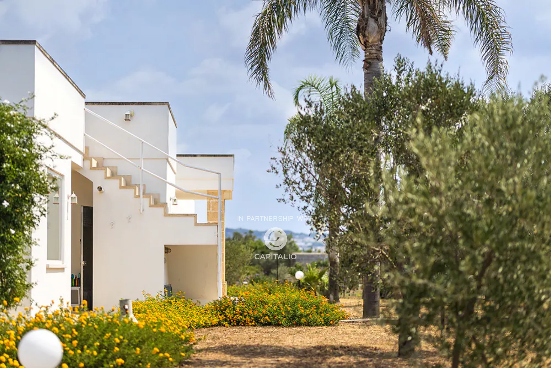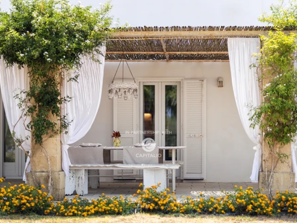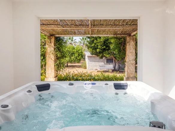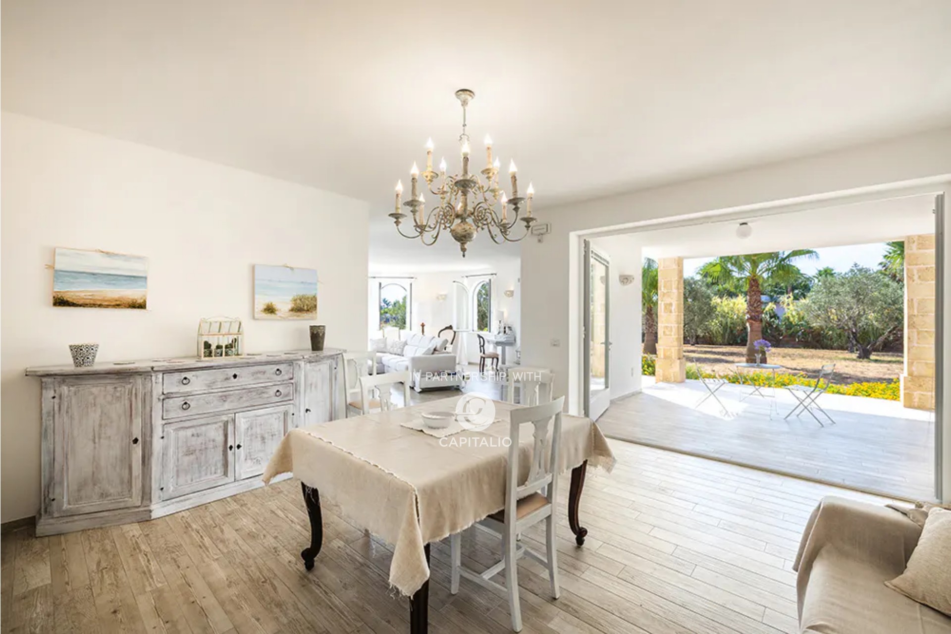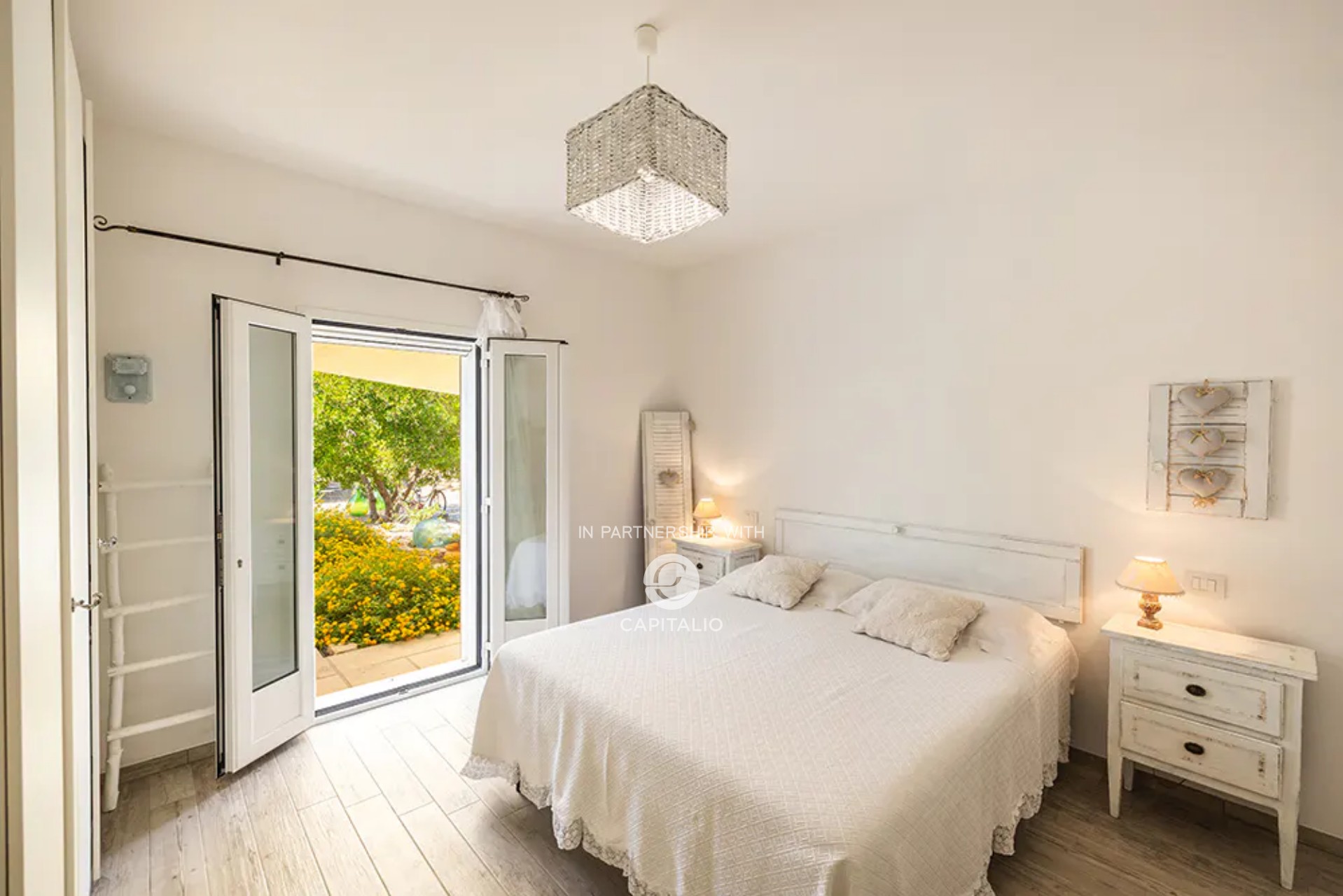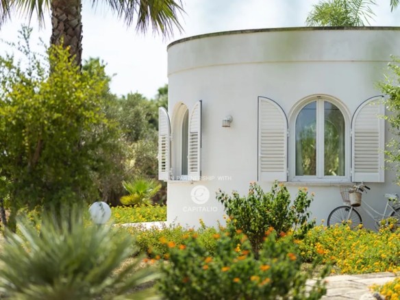 Traveling along the road from Parabita to Gallipoli, taking a country road that winds through Salento olive groves, we reach the villa in a few minutes from the center of Parabita. The villa, all on one floor, offers a pleasant view from every window over a large garden planted with 50 olive trees, fruit trees (orange, apricot, fig, plum, pear), flowers, and Mediterranean vegetation, all completely fenced. The double living area with a characteristic rounded wall overlooks a covered patio and gives access to a 180sqm pergola paved with Lecce stones that extends along one side of the villa, ideal for enjoying the outdoors as if they were an extension of the house. The very consistent interior layout is divided on one side into a sleeping area with two bedrooms, two bathrooms, and a room with glass on three sides that houses a jacuzzi with a glass dome on the ceiling; on the other side, a kitchen. The layout of the house offers the possibility of transforming the kitchen into a third bedroom, thus making the living area an open space with a kitchen. Furthermore, the covered patio that opens from the dining room can be glazed to create an additional room. The house is completed by a very convenient garage that can also be used as storage, an artesian well for water supply, and a septic tank. The property is completely cooled and heated by gas conditioners and thermal radiators, all windows are aluminum with thermal break, and a security system with internal and external sensors has been installed, as well as an electric gate and external lighting. Adjacent to the property is a fenced plot of land, on which a rustic building is constructed that can be transformed into a guest house or pool house.