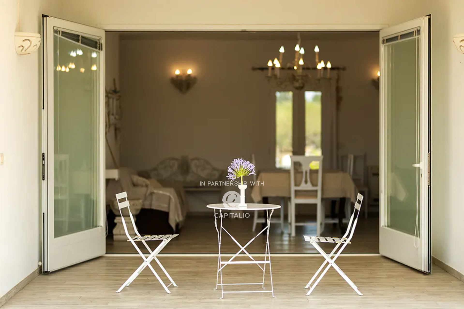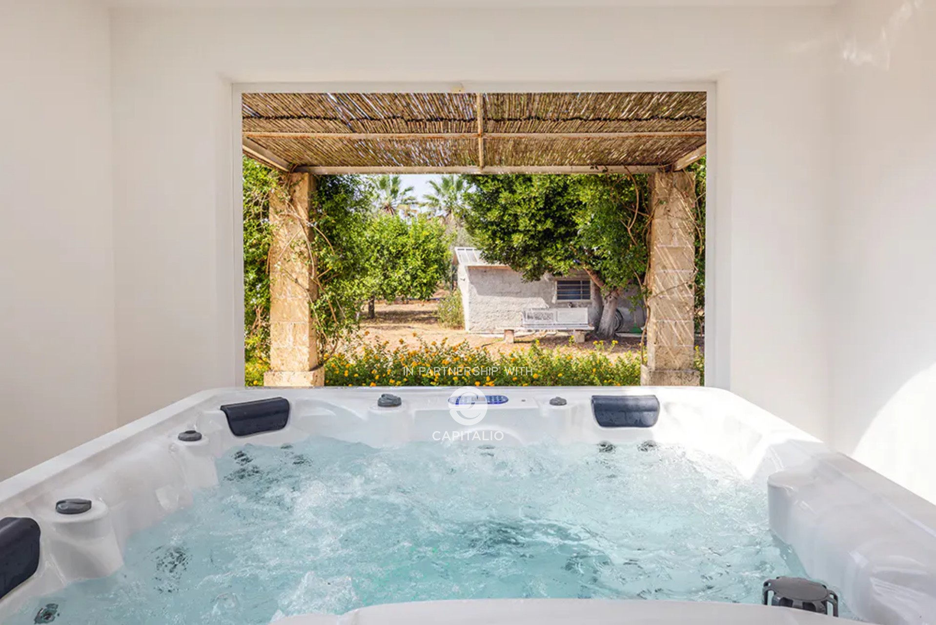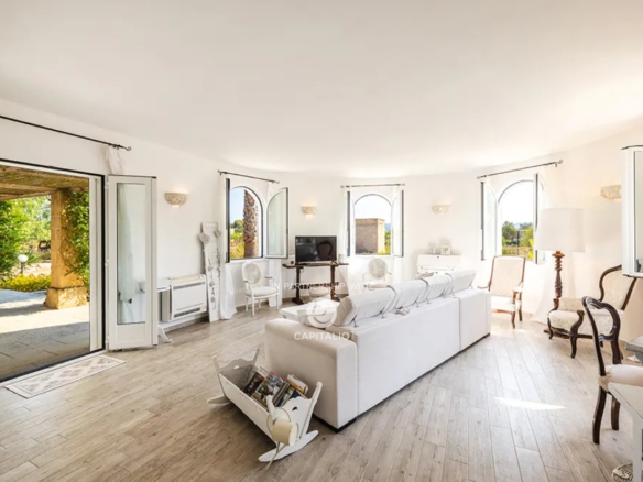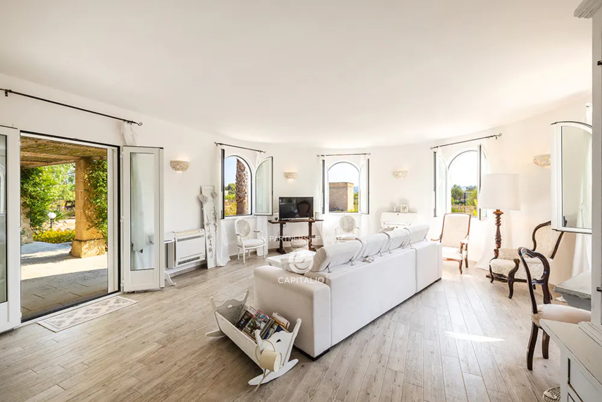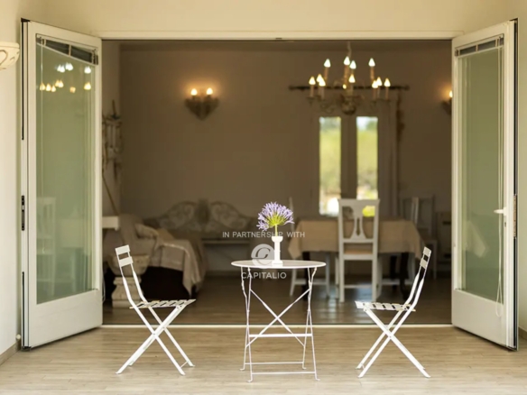 Traveling along the road from Parabita to Gallipoli, taking a country road that winds through Salento olive groves, we reach the villa in a few minutes from the center of Parabita. The villa, all on one floor, offers a pleasant view from every window over a large garden planted with 50 olive trees, fruit trees (orange, apricot, fig, plum, pear), flowers, and Mediterranean vegetation, all completely fenced. The double living area with a characteristic rounded wall overlooks a covered patio and gives access to a 180sqm pergola paved with Lecce stones that extends along one side of the villa, ideal for enjoying the outdoors as if they were an extension of the house. The very consistent interior layout is divided on one side into a sleeping area with two bedrooms, two bathrooms, and a room with glass on three sides that houses a jacuzzi with a glass dome on the ceiling; on the other side, a kitchen. The layout of the house offers the possibility of transforming the kitchen into a third bedroom, thus making the living area an open space with a kitchen. Furthermore, the covered patio that opens from the dining room can be glazed to create an additional room. The house is completed by a very convenient garage that can also be used as storage, an artesian well for water supply, and a septic tank. The property is completely cooled and heated by gas conditioners and thermal radiators, all windows are aluminum with thermal break, and a security system with internal and external sensors has been installed, as well as an electric gate and external lighting. Adjacent to the property is a fenced plot of land, on which a rustic building is constructed that can be transformed into a guest house or pool house.