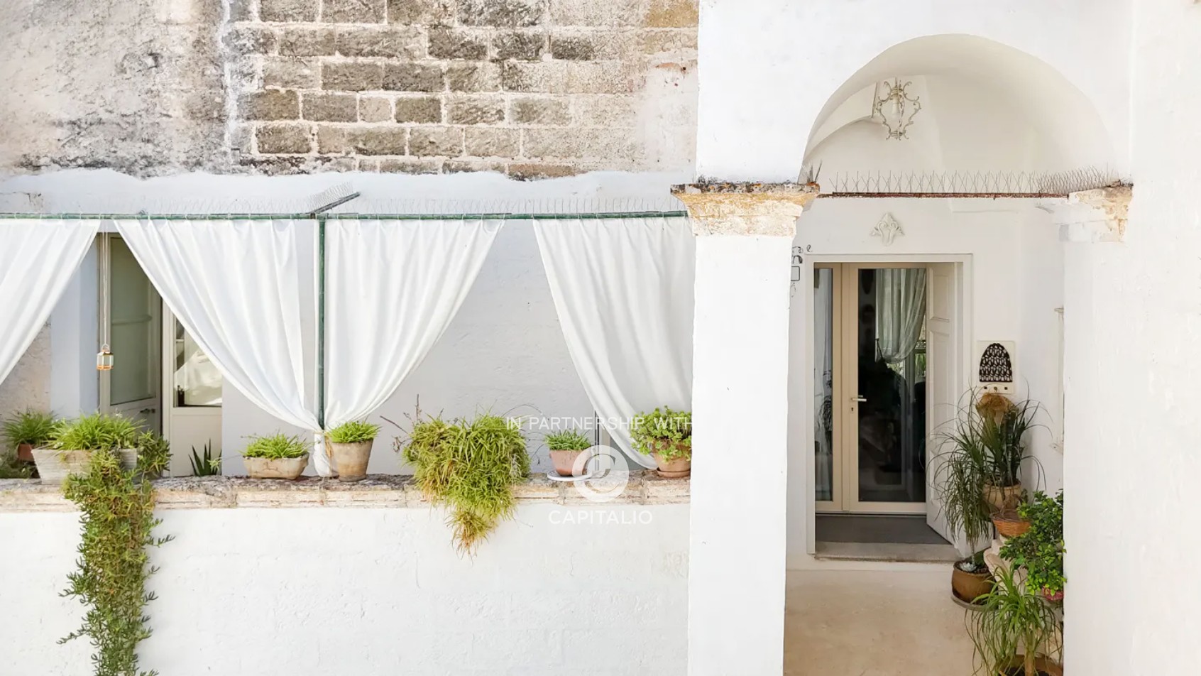 Entering through a courtyard filled with magnificent plants and covered with ancient paving stones, with an elegant staircase leading to the apartment at the end, every corner here has been carefully designed down to the smallest detail.