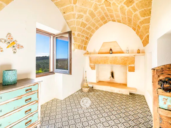 In the fully furnished kitchen, the ancient fireplace that was used for cooking and heating the environment and the original well have been preserved.