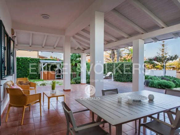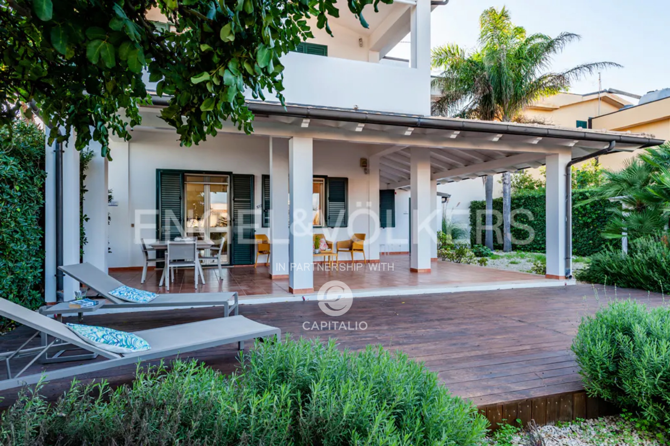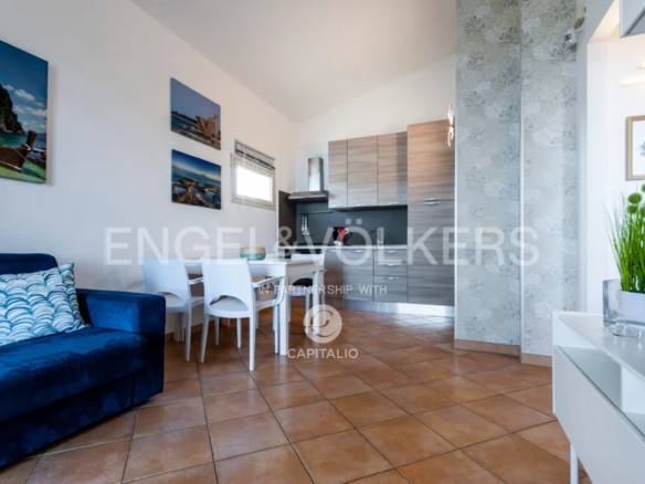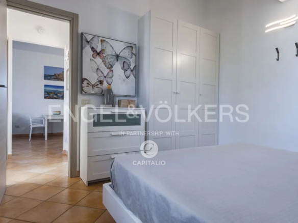 The Euthalia apartment is about 110 sqm and belongs to the exclusive Anny Residence, which is located a few steps from the beautiful beach of San Lorenzo. This lovely sea view apartment has been recently renovated. It has modern style furniture with a minimal design. The flat occupies the ground floor and consists of a large living – dining room with sofa bed, kitchen area, two bedrooms, two bathrooms, one en suite and the other placed along the corridor, in front of the second bedroom. Outside the property there is a large well-kept garden, where you can relax and enjoy the open air thanks to the presence of a barbecue area. The flat could be suitable for an investment in the circuit of holiday homes as well as for residential use, representing the optimal solution for those who are looking for a quiet place, not far from the main local touristic attractions.