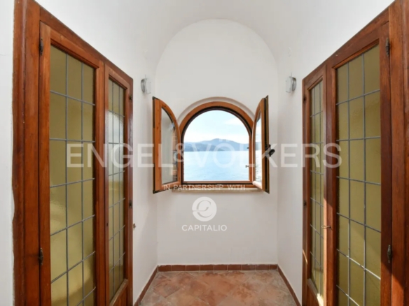 therapeutic waters that bathe the Tower. Currently it is a private residence distributed on a large floor ground with a huge dining room with ancient Vietri ceramics worked by hand; a large loggia facing the sea, furnished with elegance and which houses a living area from which you can enjoy the nature and the view that surrounds the property with absolute privacy, 8 bedrooms, 6 bathrooms, a large kitchen with adjoining laundry area, several deposits, beautiful terraces that have been created around what was once the ancient watchtower. From here the view embraces the entire coast of the Gulf of Salerno, from Punta Campanella to Punta Tresino with the magnificence of the island of Capri on the horizon. Going down 20 steps you reach the private beach and the wonderful sea under the Tower. The Villa is located at the entrance of the property and needs to be renovated. The natural beauty of the place combined with the evocative Ancient Tower, the possibility of creating a bridge with mooring right under the Tower; the park of about 2.4 hectares, the flavors of the local products to be used both in the kitchen and for SPA treatments: all this represents a potential to build a private paradise with few rivals in Italy or a Beach Resort that will amaze everyone!
