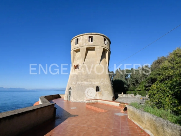 Architectural marvel in the Gulf of Salerno, and more precisely in Agropoli, characterized by an exclusive property with a dominant position on the sea and with a breathtaking view over the entire coast: a Tower of 1500 d.C. of 700 square meters, a Villa of the 60s of about 1000 square meters, a magnificent park of 2,500 square meters of Mediterranean scrub, autochthonous essences and majestic trees that frame and gently slope to the edge of the cliff where access to the sea is via a comfortable private staircase; the wide cliff is a small natural jewel set between the Mediterranean maquis and the sea. The Tower dating back to the ‘500 was originally a watchtower against the raids of the Saracens and pirates in the Mediterranean sea and it has preserved intact the authentic charm of the time that distinguishes it so much. Since 1800 doctors have sung the praises of the virtues